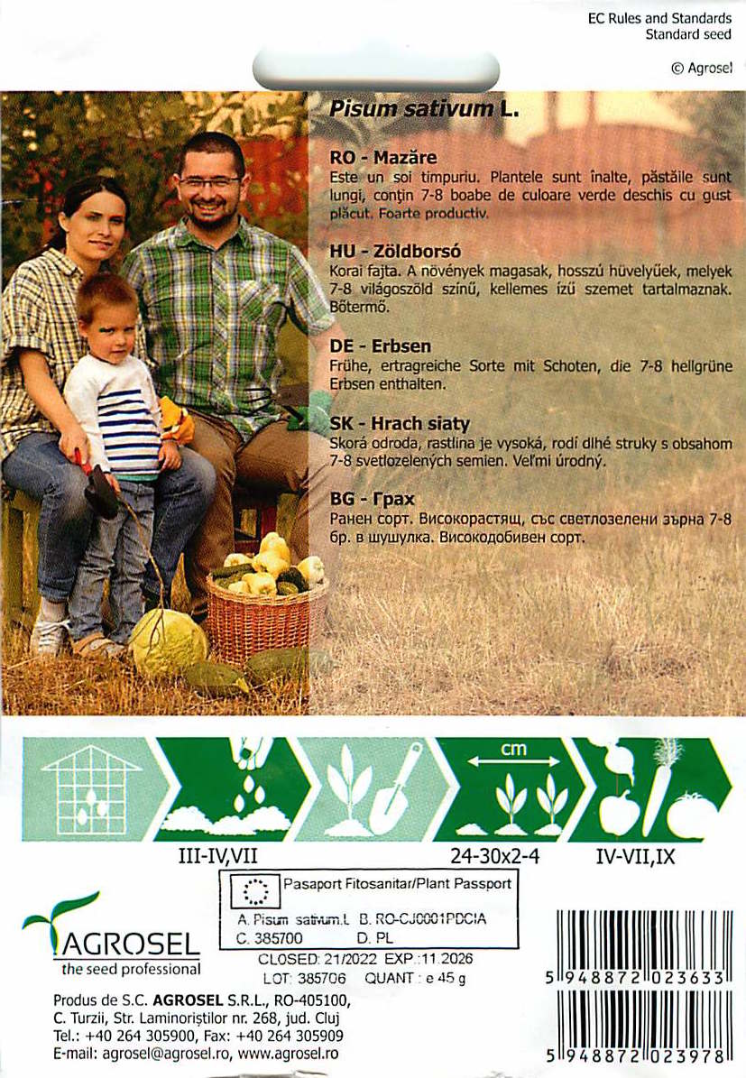 - Grote, grasgroene peulen met donkergroene, ronde erwten