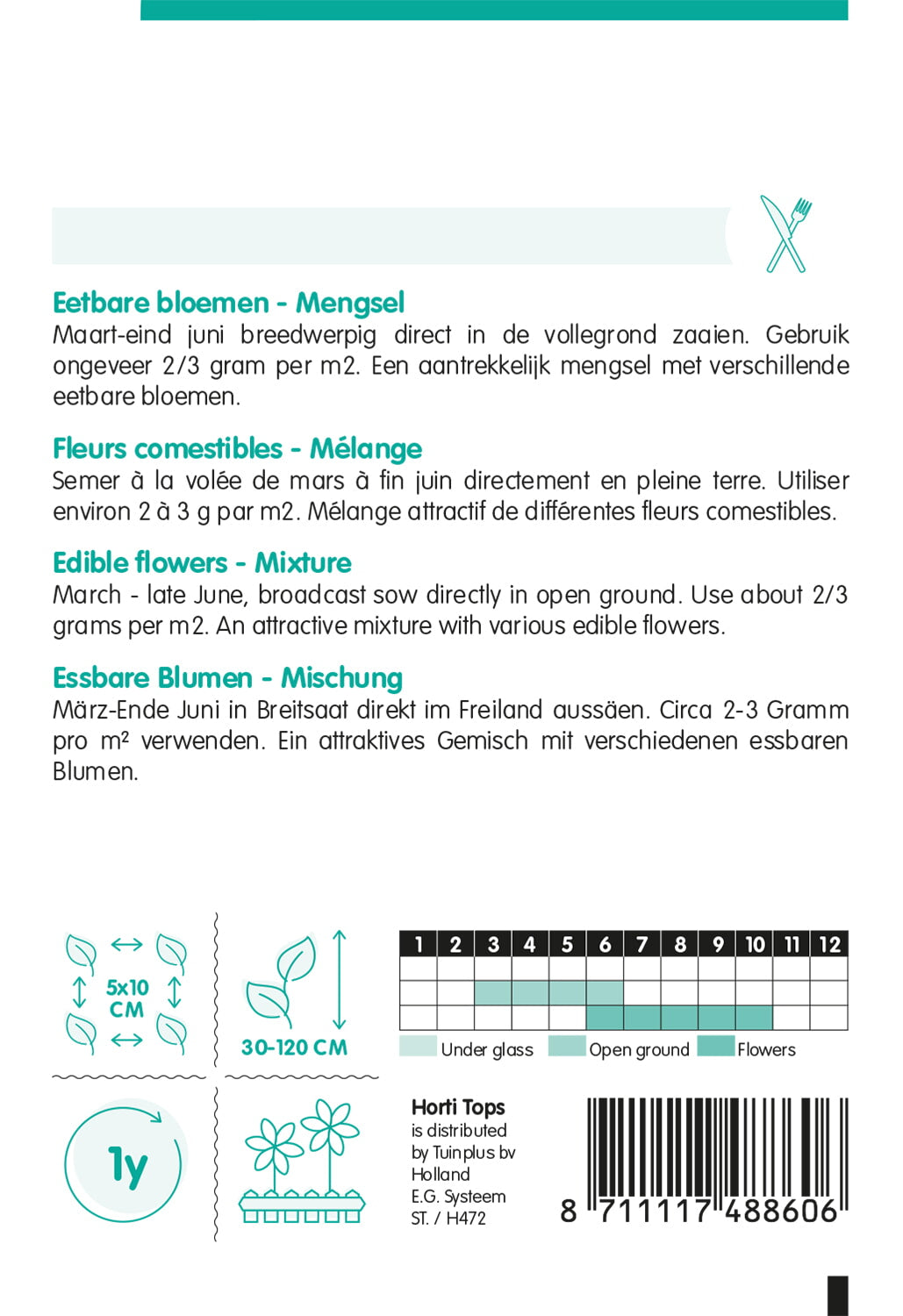 - An attractive mixture with various edible flowers like Althea rosea, Brorage, Calendula, Centaurea cyanus, Tagetes, Tropaeolum en Viola